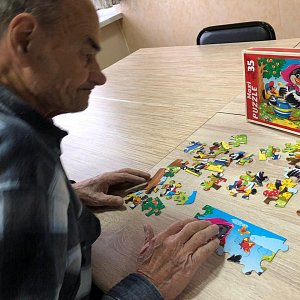 Пазлы. На любой стадии деменции ежедневное собирание пазлов — это отличный способ стимулировать мозг. Чтобы это занятие было интересным для вашего пожилого родственника можно сделать пазлы самостоятельно из его фотографий или любимых пейзажей. Для этого необходимо распечатать изображения на цветном принтере, за ламинировать их и разрезать на четыре равные части.
