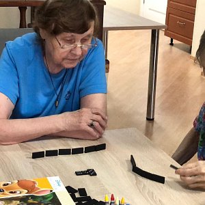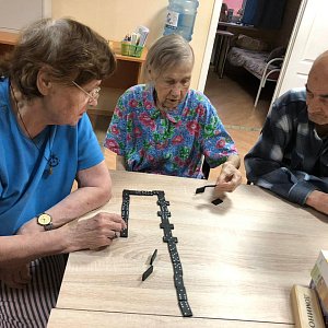 Домино. Несмотря на простоту этой игры, наличие на костяшках домино разных цветов и цифр позволяет пожилым людям задействовать свои навыки рассуждения и мышления.